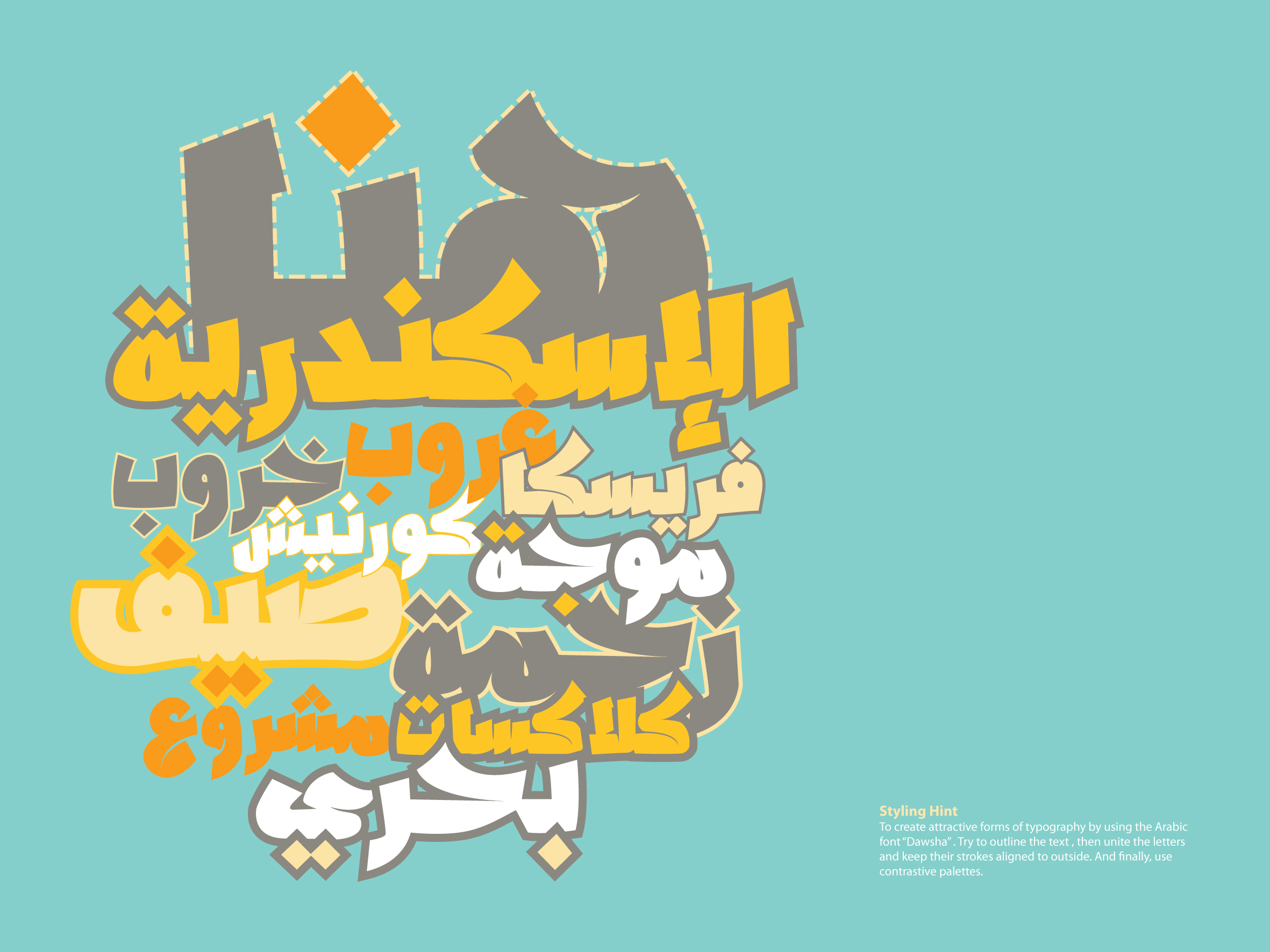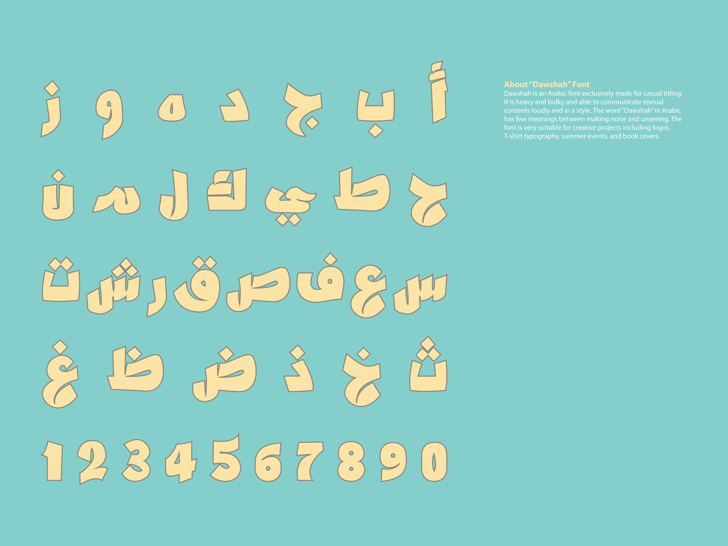 If you’re looking to enhance your typography with a distinctive Arabic font that combines tradition and innovation, Dawshah is the perfect choice. Unlock new creative possibilities and transform your designs into captivating visual experiences.